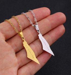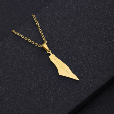 A beautifully engraved pendant featuring the map of historic Palestine, available in elegant gold and silver variants. ✨